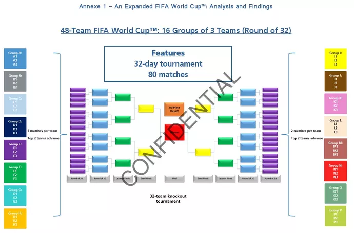 Documento confidencial da Fifa mostra como seria chaveamento na Copa com 48 seleções (Foto: Reprodução)